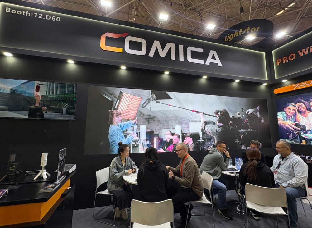 In September 2025, the Amsterdam IBC show had become the focus of the global broadcasting industry again. Comica presented a series of professional products and brought unique audio technology to the visitors. The full line of audio equipment has been displayed, including wireless lavalier mic, professional shotgun mic, studio mic, etc. Every detail imbues the sound with emotion, bringing heart-moving sound to visitors.