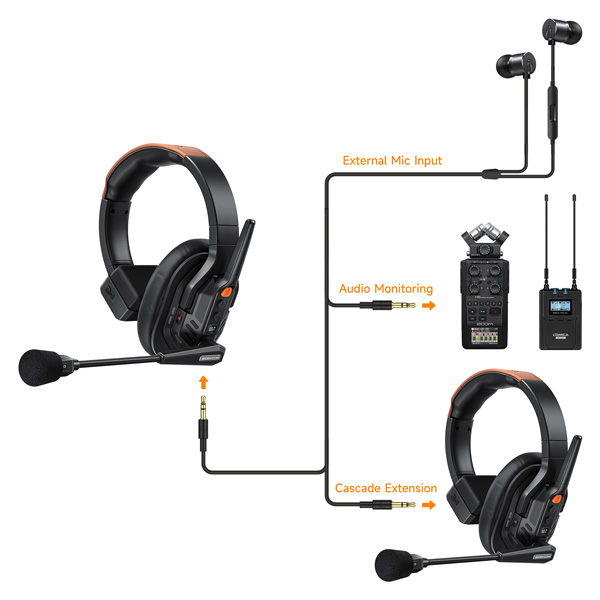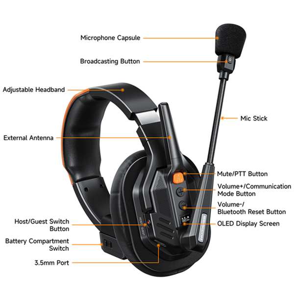 It supports two-way communication for up to 5 people in real time. Free pairing and ready to use upon power-on.The number of users can be extended to 8 through the wired cascade.